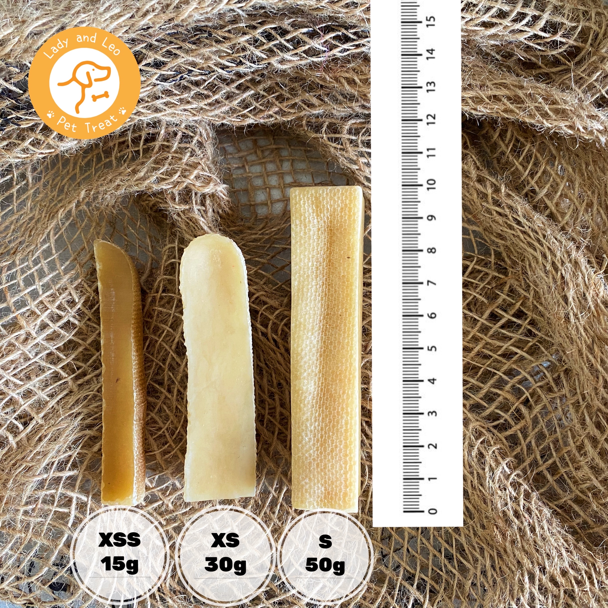 這裡是多根包裝賣場總重量200g 要大size或者更多根還有350g包裝以及500g 包裝 越大包越便宜 期限買回去都可以有一年保存期 200g per Pack XXS contain 13 pcs dog chew XS contain 6 pcs dog chew S contain 4 pcs dog chew M contain 3 pcs dog chew L contain 2 pcs dog chew SPEC weight: 200 gram ± 10% XXS-(For Maltes. Toy Poodle.Yorkshire) XS- (For Pomeranian.Schnauzer) S- (For Tibet Pug.Shin Tzu. Bichon Frise) M- (For Shiba Inu, Jack Russell Terrier) L-(For Corgi.Beagle.Sheltie) 🐕KEEP YOUR DOG HAPPY FOR HOURS with our delicious Yak cheese Lady&Leo dog chews from the Himalayan! Your doggy will love the natural dental chew, while you can rest assured that your pup is enjoying a healthy snack! 🦷 SPOIL YOUR DOGGY WITH A HEALTHY TREAT! Our mouth-watering traditional yak chews are made in Nepal using only 100% Yak and cow milk, without any preservatives, additives or artificial ingredients. 💯 PERFECT SIZE FOR EVERY CHEWER! If your doggie loves to chew, then our large sized 6-8” Lady&Leo dog chews made in the Himalayan are ideal for you, since they are ODORLESS and can be used both indoors and outdoors! 🐾 UNLIKE ALL THOSE LOW-QUALITY DOG CHEWS, the Lady&Leo Pet Treats canine-approved dog chews from the Himalayas will keep your furkids busy for hours, help prevent plaque buildup and can be easily digested! 😄THE Lady&Leo PET TREATS SATISFACTION GUARANTEE! Being pet owners ourselves, we know exactly how to make your dog’s tail wag! That’s why our dog chews are backed by our 100% satisfaction guarantee!